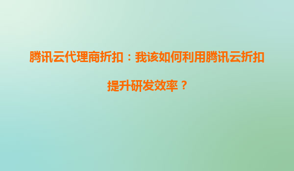 腾讯云代理商折扣:我该如何利用腾讯云折扣提升研发效率?