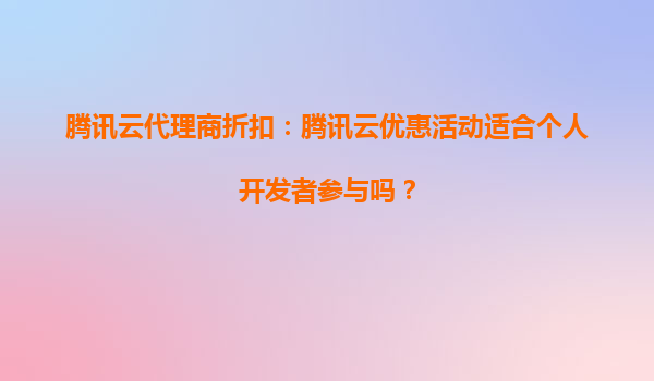 腾讯云代理商折扣:腾讯云优惠活动适合个人开发者参与吗?