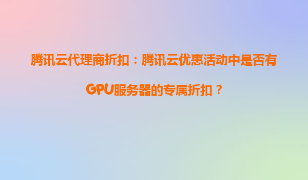 腾讯云代理商折扣:腾讯云优惠活动中是否有GPU服务器的专属折扣?