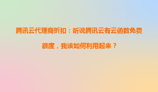 腾讯云代理商折扣:如何充分利用腾讯云函数的免费额度?