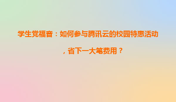 学生党福音:如何参与腾讯云的校园特惠活动,省下一大笔费用?