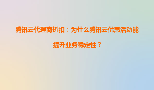 2025-05-23腾讯云代理商折扣:为何腾讯云优惠活动能促进技术升级? 引言:优惠活动与技术升级的双赢逻辑 在云计算市场竞争日益激烈的背景下,腾讯云通过代理商折扣和多样化优惠活...