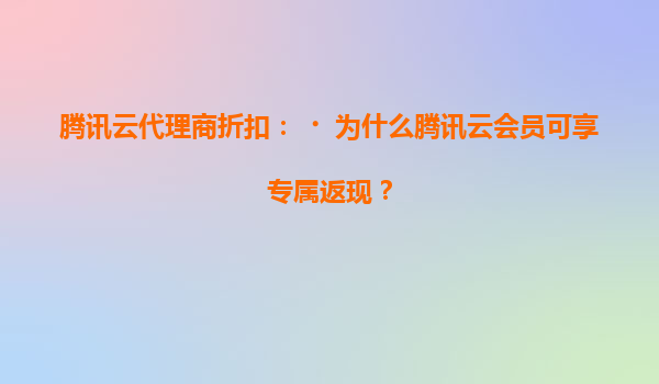 腾讯云代理商折扣:为什么会员可享专属返现? 一、腾讯云的核心优势 作为国内领先的云计算服务商,腾讯云凭借以下优势成为企业数字化转型的首选: ...