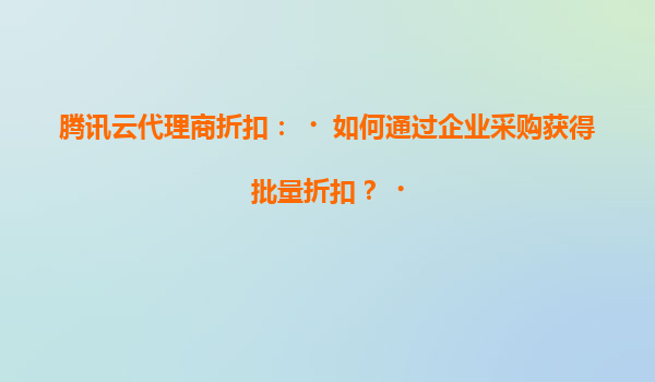 2025-05-21腾讯云代理商折扣:如何通过企业采购获得批量折扣? 一、腾讯云的核心优势 在数字化转型浪潮中,腾讯云凭借以下核心优势成为企业上云的首选: 技术实力雄厚:依托腾讯集团20余年技术积累,覆...