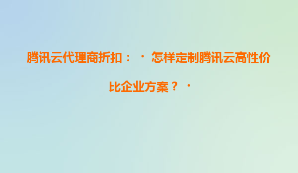 2025-05-21腾讯云代理商折扣:如何定制高性价比企业方案? 一、腾讯云的核心优势解析 腾讯云作为全球领先的云计算服务商,其核心竞争力体现在以下方面: 技术实力雄厚:依托腾讯集团20余年技术积累...