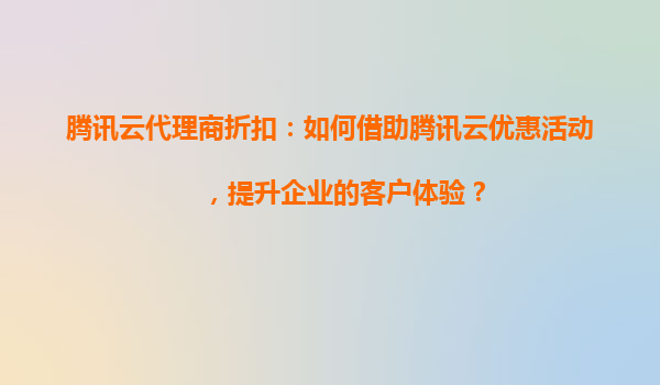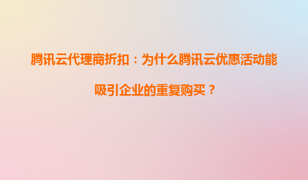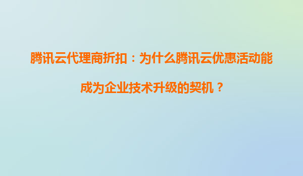 腾讯云代理商折扣:为什么腾讯云优惠活动能成为企业发展壮大的得力助手? 在数字化转型的浪潮中,云计算已成为企业提升效率、降低成本、加速创新的核心工具。作为国内领先的云服务提供商,腾讯云凭借其强大...