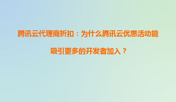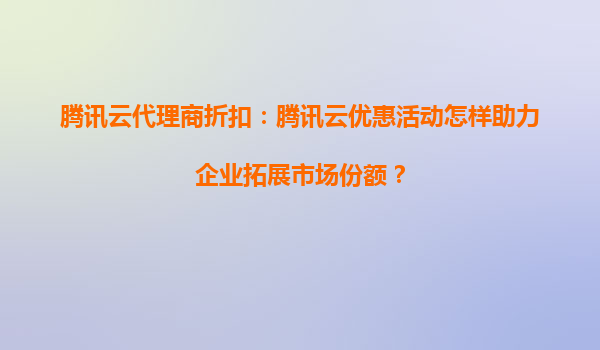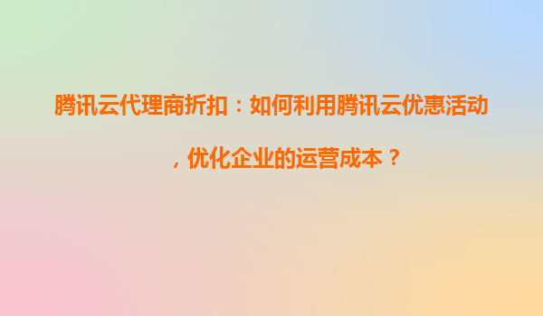 腾讯云代理商折扣与优惠活动:助力企业灵活应对市场变化 弹性成本控制,优化企业资源投入 在市场竞争日益激烈的环境下,企业需要更灵活的成本管理策略。腾讯云通过代理商折扣及定期推出的优惠活动...