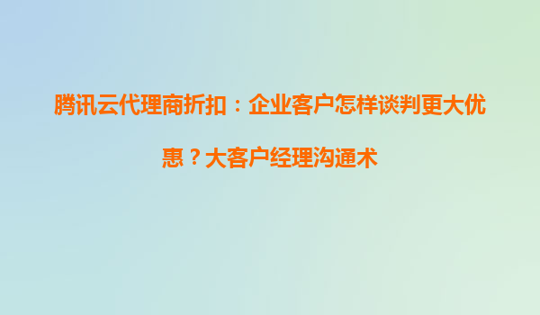 企业客户如何通过腾讯云代理商谈判更大优惠? 在云计算市场竞争日益激烈的今天,企业客户通过腾讯云代理商获取折扣已成为降本增效的重要途径。然而,如何最大化谈判优势、争取更优合作条件,需要结...