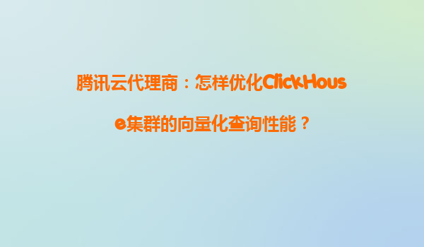腾讯云代理商:怎样优化ClickHouse集群的向量化查询性能?