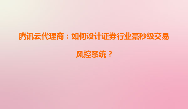 腾讯云代理商:如何设计证券行业毫秒级交易风控系统?