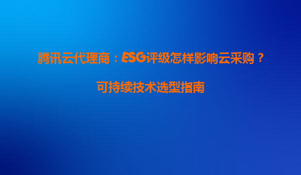 腾讯云代理商:ESG评级怎样影响云采购?可持续技术选型指南