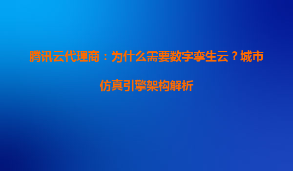 腾讯云代理商:为什么需要数字孪生云?城市仿真引擎架构解析