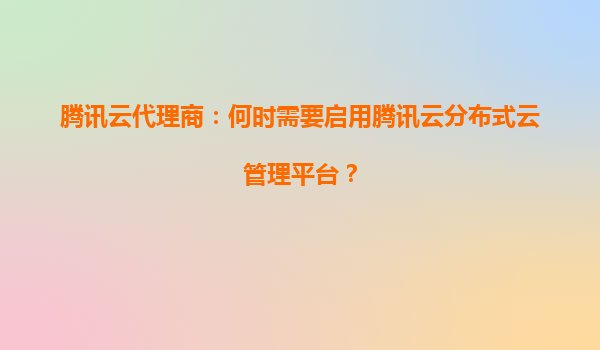 腾讯云代理商:何时需要启用腾讯云分布式云管理平台?