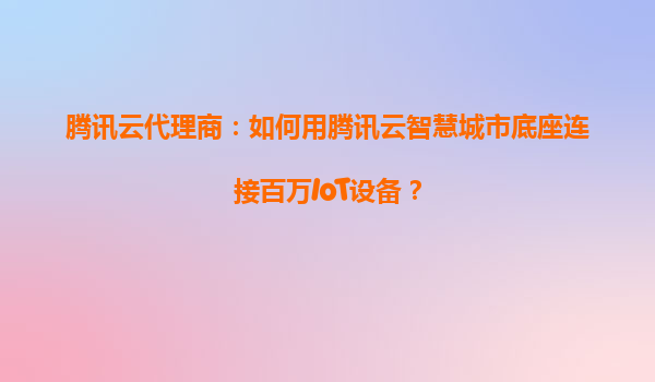 腾讯云代理商:如何用腾讯云智慧城市底座连接百万IoT设备?