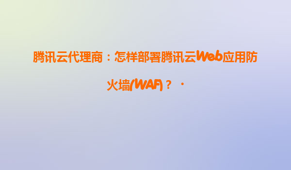 腾讯云Web应用防火墙(waf)部署指南