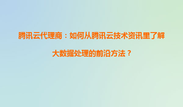 腾讯云代理商如何通过技术资讯掌握大数据处理前沿方法?