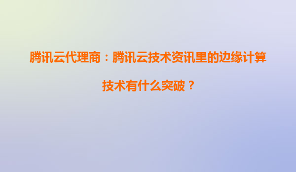 腾讯云代理商视角:边缘计算技术的突破与生态共赢
