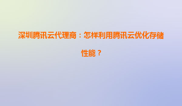 深圳腾讯云代理商:怎样利用腾讯云优化存储性能?