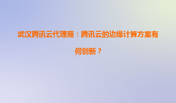 武汉腾讯云代理商:腾讯云的边缘计算方案有何创新?