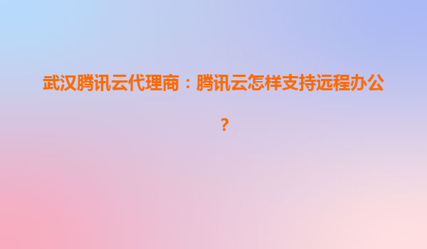 武汉腾讯云代理商:腾讯云如何高效支持远程办公?