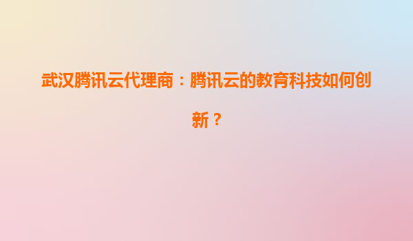 武汉腾讯云代理商:腾讯云的教育科技如何创新?