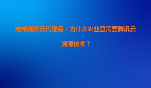 农业县数字化转型的必然选择:腾讯云溯源技术