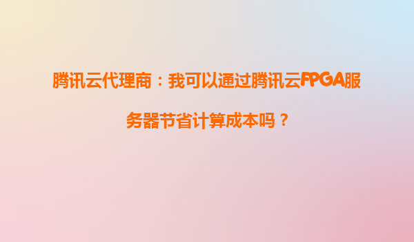 腾讯云FPGA服务器如何助力企业节省计算成本