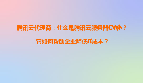 腾讯云代理商:腾讯云服务器CVM的核心价值与成本优化解析