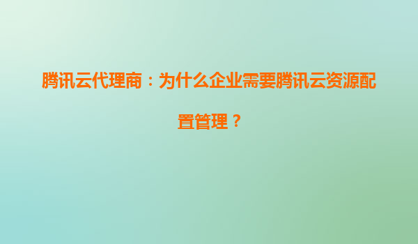 腾讯云代理商:为什么企业需要腾讯云资源配置管理?