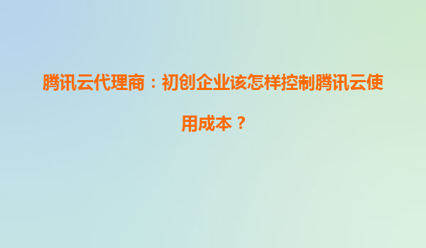 初创企业如何通过腾讯云代理商控制使用成本?