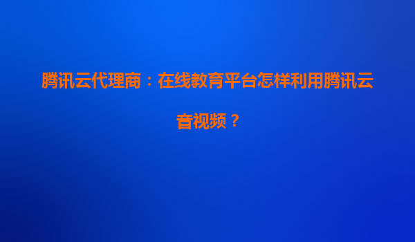 腾讯云代理商:在线教育平台如何高效利用腾讯云音视频解决方案