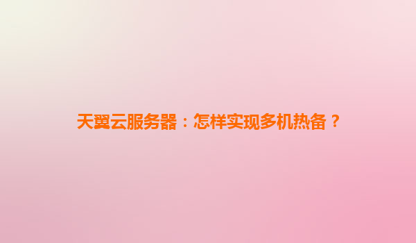 天翼云服务器:怎样实现多机热备?