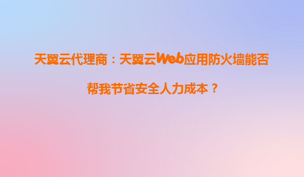 天翼云代理商:天翼云Web应用防火墙如何帮您节省安全人力成本?