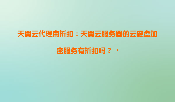 天翼云代理商折扣解析:云硬盘加密服务是否享受优惠?
