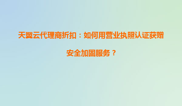 天翼云代理商折扣:如何用营业执照认证获赠安全加固服务?