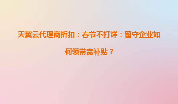 春节作为中国最重要的传统节日,许多企业面临员工休假与业务持续运转的双重挑战。对于需要保持线上服务稳定的留守企业而言,带宽资源的高效利用与成本优化尤为关键。天翼云作为国内领先的云服务提供商,不仅提供稳定可靠的云计算基础设施,更在春节期间推出代理商专属带宽补贴政策,为企业降本增效提供强力支持。