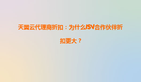 天翼云代理商折扣解析:为什么ISV合作伙伴能享受更大优惠?
