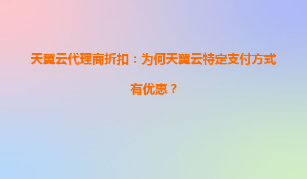 天翼云代理商折扣:为何特定支付方式更享优惠?