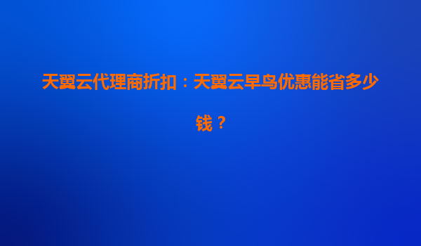天翼云代理商早鸟优惠:智慧上云,省时省钱更省心