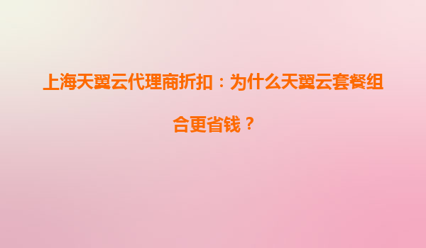 上海天翼云代理商折扣:为什么天翼云套餐组合更省钱?