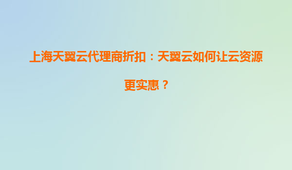 上海天翼云代理商折扣:天翼云如何让云资源更实惠?