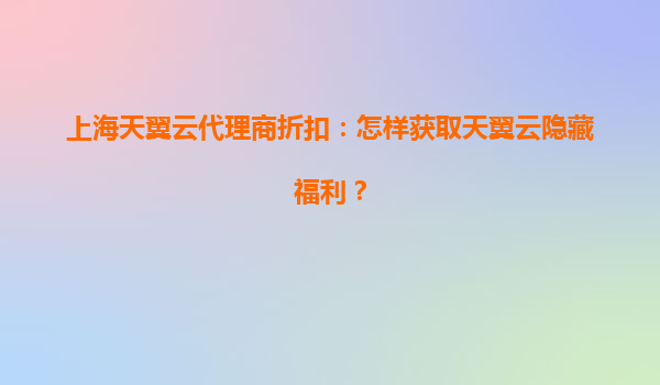 上海天翼云代理商折扣:解锁隐藏福利的终极指南