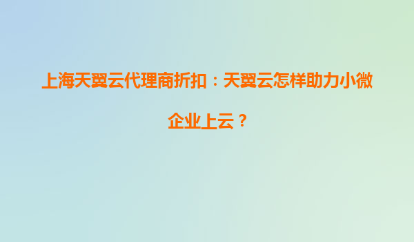 上海天翼云代理商折扣:天翼云怎样助力小微企业上云?