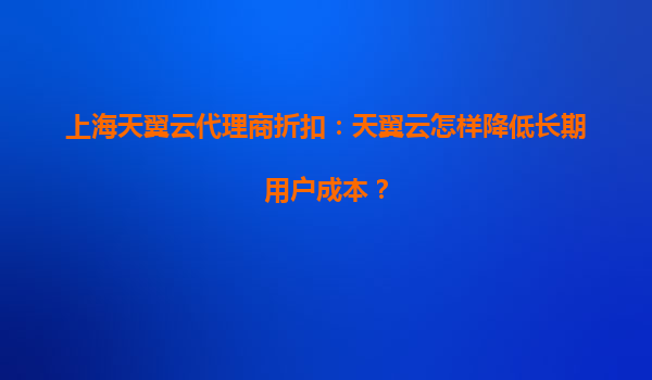 上海天翼云代理商专属折扣:如何通过代理合作降低长期云服务成本