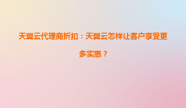 在数字化转型加速的今天,云服务已成为企业不可或缺的基础设施。作为中国领先的云服务提供商,天翼云凭借其独特优势,通过代理商折扣机制,为企业客户提供更具性价比的云服务解决方案。这种模式不仅降低了企业IT成本,还通过专业服务提升了云资源使用效率。
