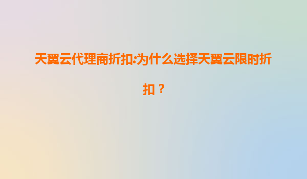 天翼云代理商限时折扣:为什么选择天翼云限时折扣?