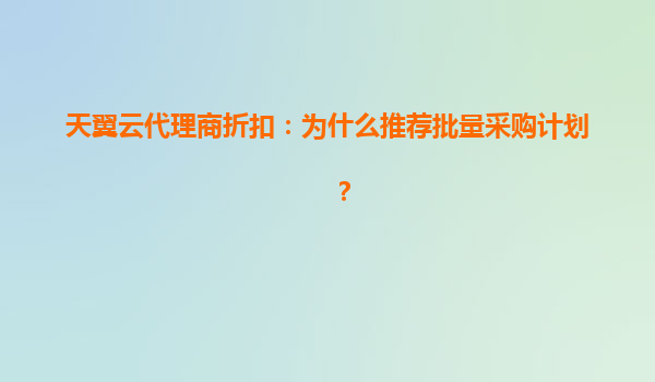 天翼云代理商折扣:为什么推荐批量采购计划?