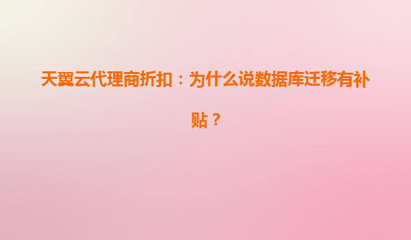 天翼云代理商折扣:为什么说数据库迁移有补贴?