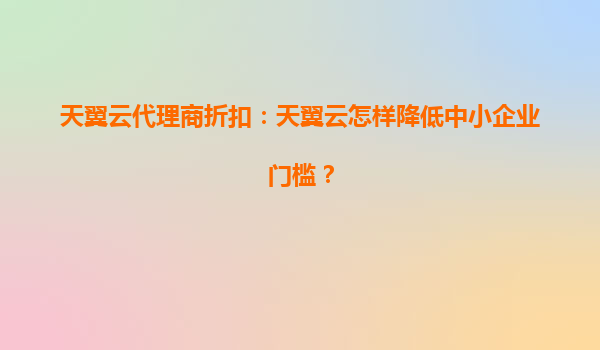 天翼云代理商折扣:天翼云怎样降低中小企业门槛?