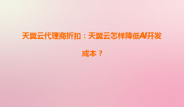 天翼云代理商折扣:天翼云怎样降低AI开发成本?